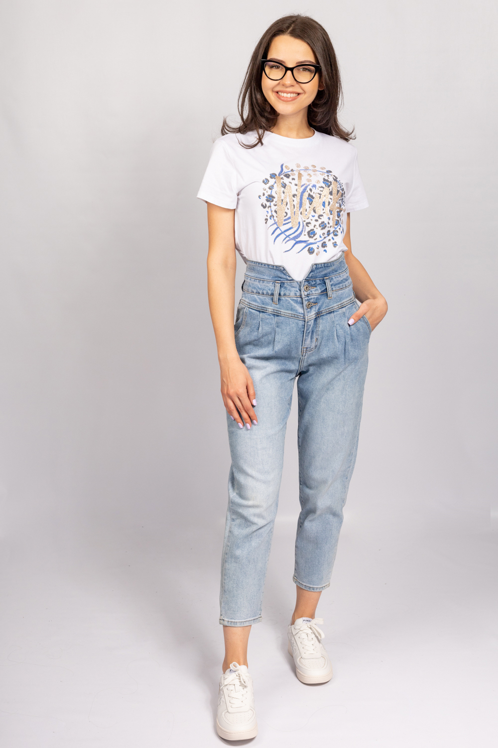 Дънки с висока талия mom fit.