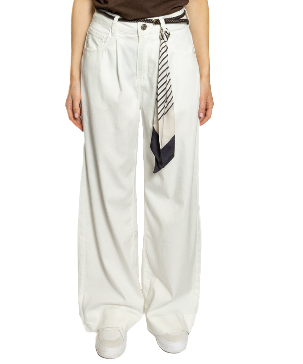 Дънки с висока талия и широк крачол. Декоративно коланче