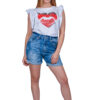 Къси дънки с висока талия и накъсан крачол.