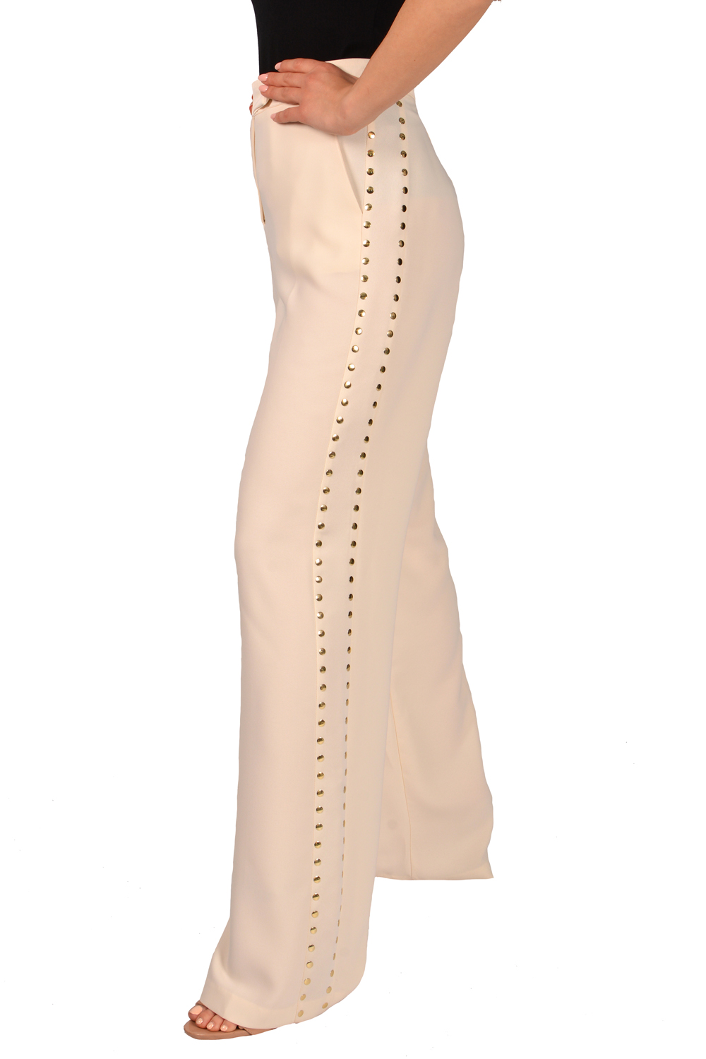 Панталон с широки крачоли и капси. Висока талия.
