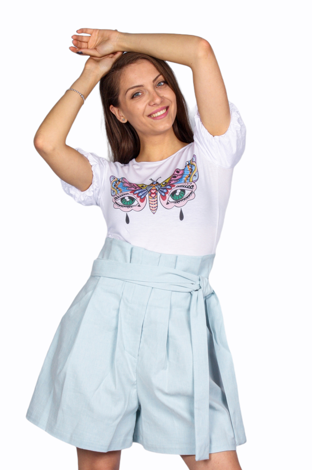 Къс панталон с декоративно коланче.