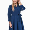 Рокля с дълъг ръкав и декоративно коланче.