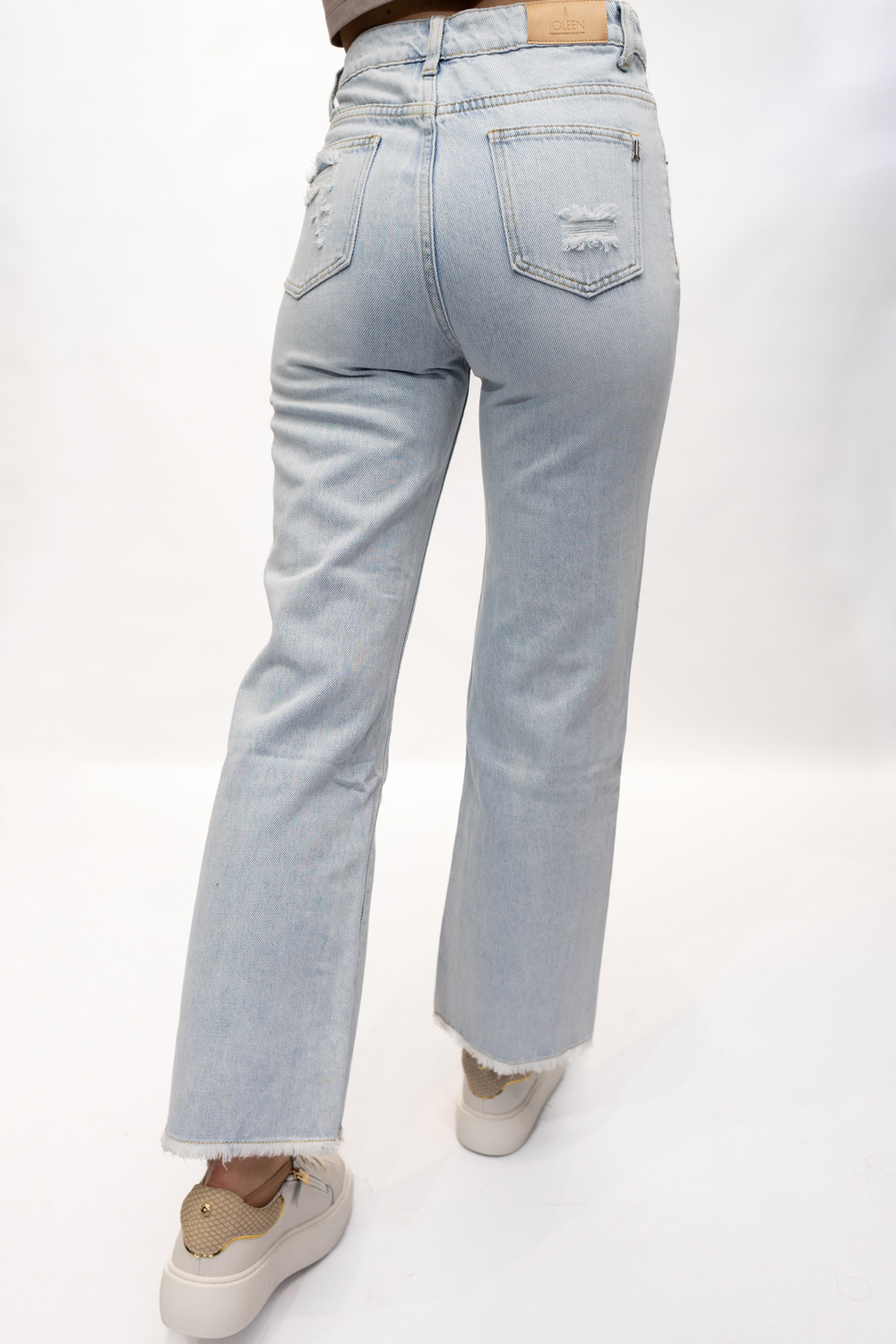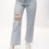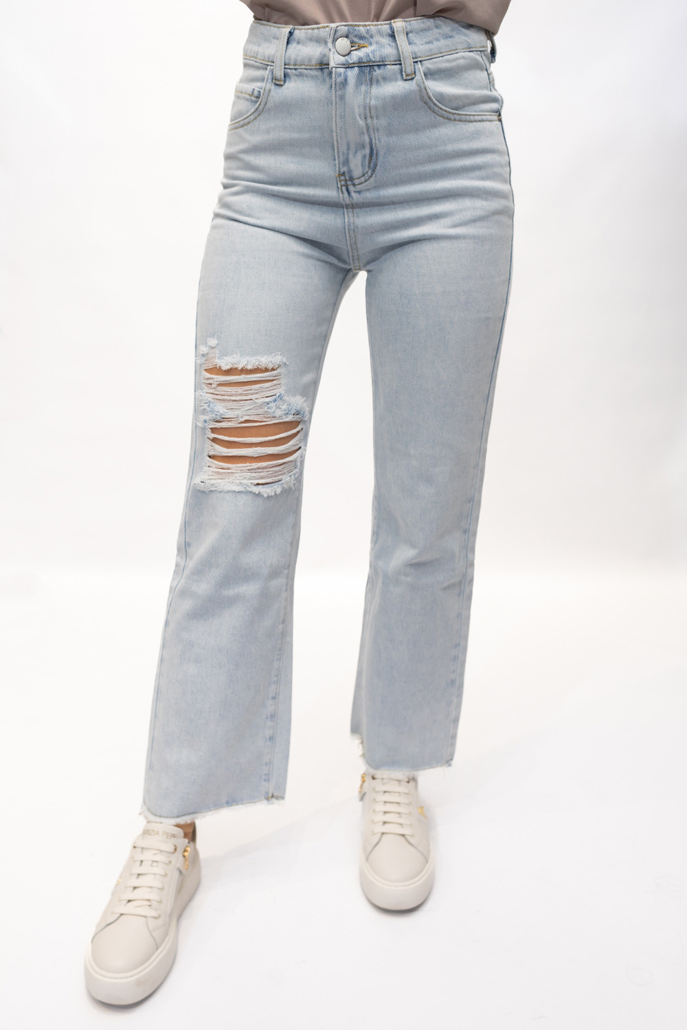 Дънки с висока талия и накъсан ефект.